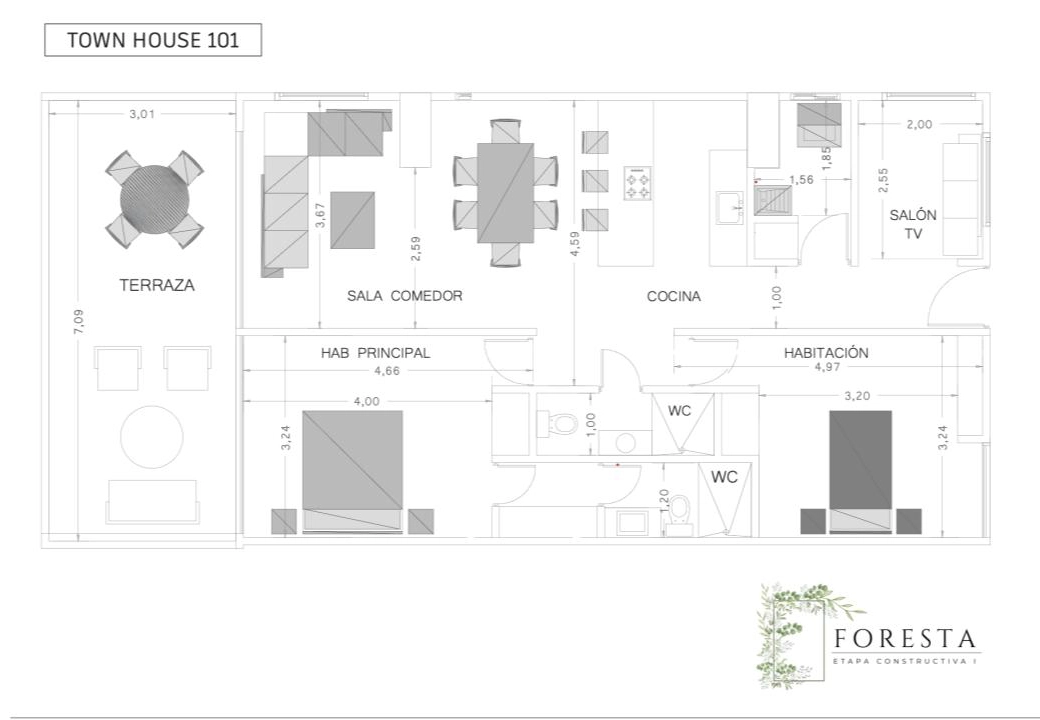 Este es un TOWNHOUSE que cuenta con generosos espacios: